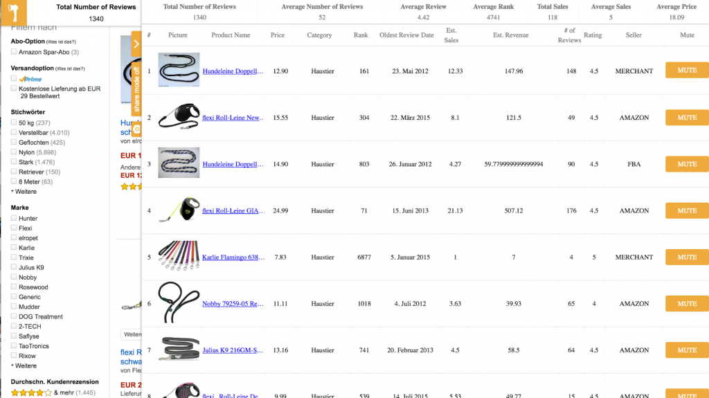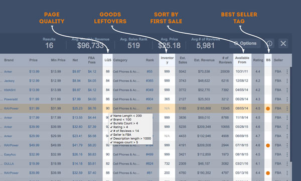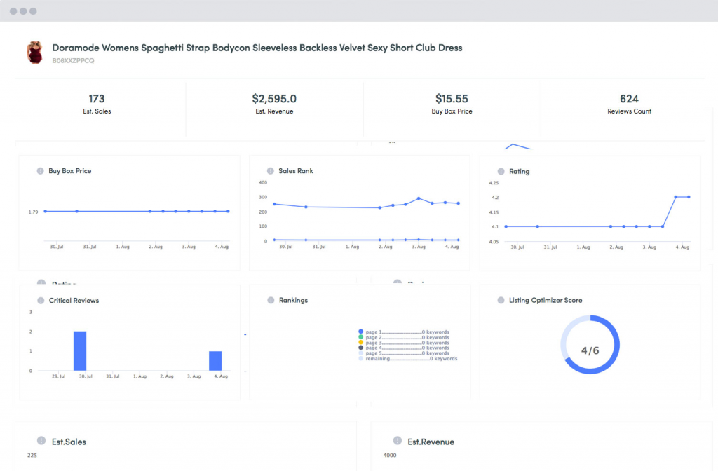 全面的数据,有关价格、畅销榜排名、评论和预估销量等其他信息