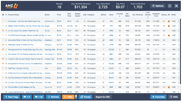 与Jungle Scout类似,AMZ Scout也有网页版和插件版,但AMZ Scout的数据比较落后且比较不精准。你可以使用插件版在任一亚马逊页面分析产品数据。分析listing质量得分(LQS)可以给你的Listing打分,分数范围为1-100。共包括以下信息及详情:卖家无需担心购买过多库存而造成不必要的损失,这款工具不会过度预估产品销量。它提供有独特的指标,如Date First Available可用于查看新产品的状态,Favorites(星标)用于收藏产品并追踪其数据等其他功能。同样的,AMZ Scout也支持亚马逊9大站点:美国、墨西哥、加拿大、英国、西班牙、德国、法国、印度、意大利和日本。美国站的数据比起其他站点更准确。并且,这款工具支持7种语言使用:英语、法语、德语、俄语、中文、越南语和日语,各种语言都有优秀的客服。AMZ Scout最适合在寻找价格适中、了解预估值的选品工具的美国站卖家。网页版和插件版都有免费试用期,收费详情具体如下。