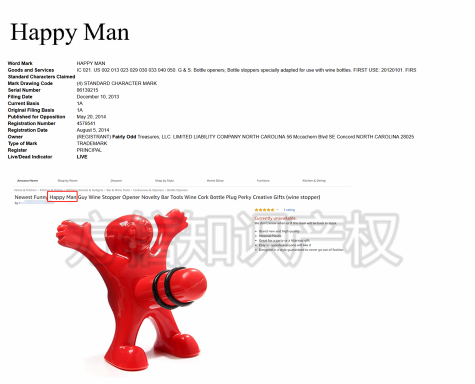侵权预警词(已注册商标,但未有维权案件): happy man (快乐男人)--小红人瓶塞产品系列