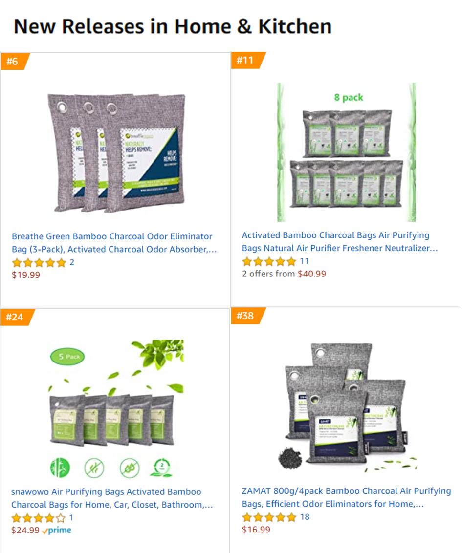 比如最近防疫周边产品就很畅销:活性炭空气清新袋 抢占了Home Charcoal Air Purifiers 类目Best Sellers榜首,单个售价约5美金,运费4.49美金,采用自发货,利润非常可观。产品仅有10个Review,评分4.5。
