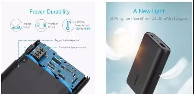 2.商品质量说明:用一张图说明产品的质量、耐用性:方便防摔、抗震、极地温度都适用。这么强大的功能,直接打到买家痛点,多个需求只要一个产品即能满足。