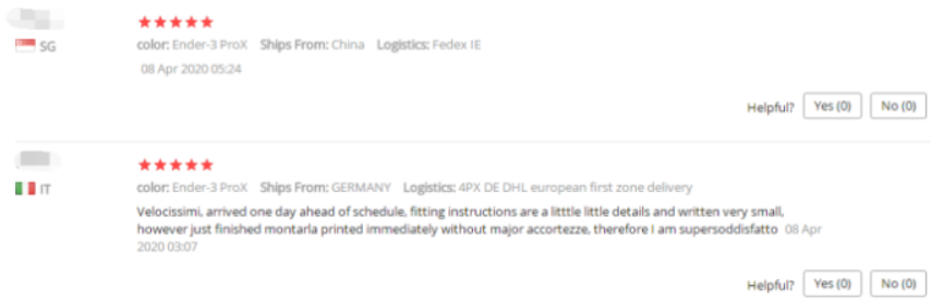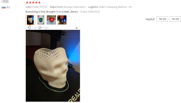 从速卖通目前数据显示,近几个月从速卖通上购买3D打印机的人确实明显增多。爱沙尼亚、罗马尼亚、芬兰、意大利、丹麦、西班牙、新加坡、日本等全球网友都在速卖通上网购3D打印机,而且还都给出了“闪亮”的5星好评!这位芬兰的网友4月8号评论下单付款后就立刻装箱发货了,还建议慢慢来,不要着急!这位日本的网友收到货后,安装检测,没有螺丝松动等现象。因为产品质量好,还想再来一单。西班牙的网友则大赞物流之快,4天就到货了,质量也是相当棒!这是俄罗斯网友用3D打印机制作的作品,像是一个头型的置物筐,看上去非常精致。3D打印不仅在速卖通上畅销,在整个国内一直都保持着走高的姿势。2019年3D打印产业规模达157.47亿元,较2018年实现大幅提升。