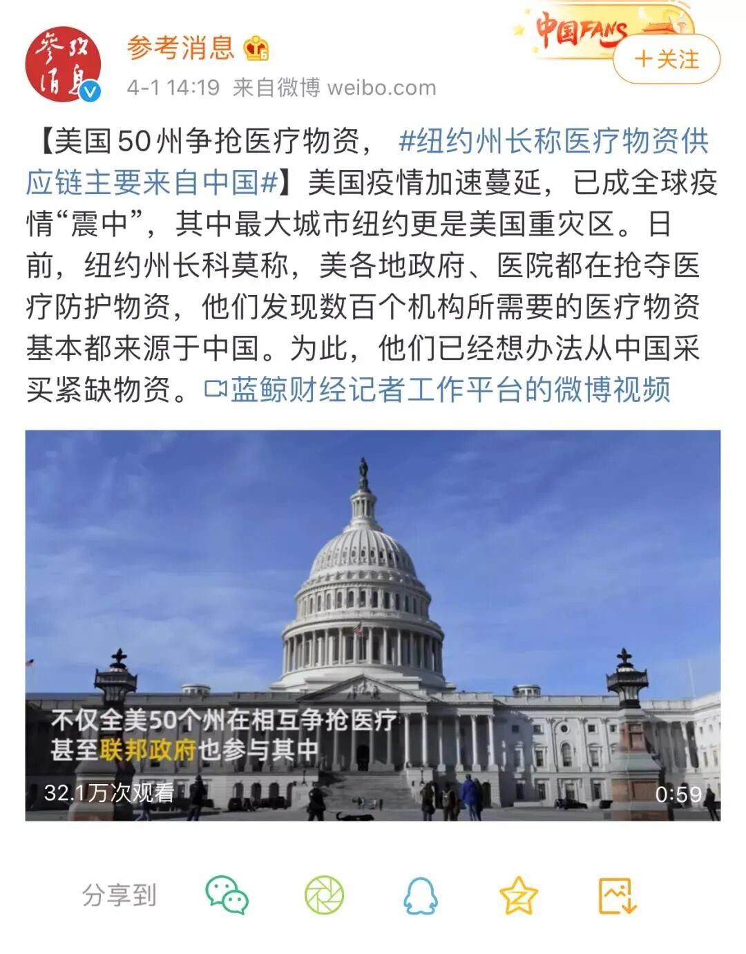 4月1号,美国50州都争抢的医疗物资基本都来源于中国。