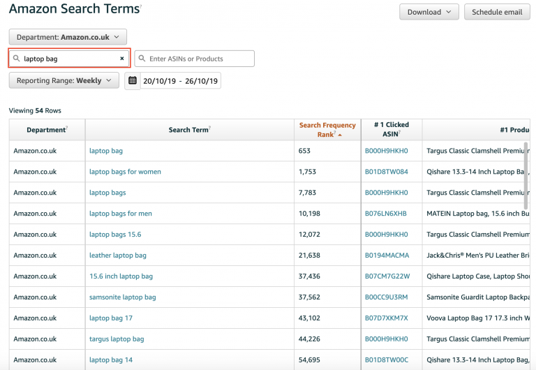Brand Analytics有很多优势,首先它是完全免费的,而且它提供了大量有价值的数据,让你监控竞争对手,确定其推动销售的关键因素,让你最大限度的提高销量和点击量。你还可以利用Brand Analytics里的数据来了解目标受众的购物行为,比如以“笔记本电脑包(laptop bag)”为例,搜索量排在第二的是“女式笔记本电脑包(laptop bag for women)”,你就可以借此推出新品。此前我们也发布了一篇关于利用Brand Analytics计算竞争对手转化率的文章,传送门。亚马逊的Brand Analytics功能仍处于早期开发阶段,虽然数据还不够完善,但是蕴含了很大的价值。随着Brand Analytics的成熟,卖家会获得更多有益的数据,卖家可以尽早利用这个功能。