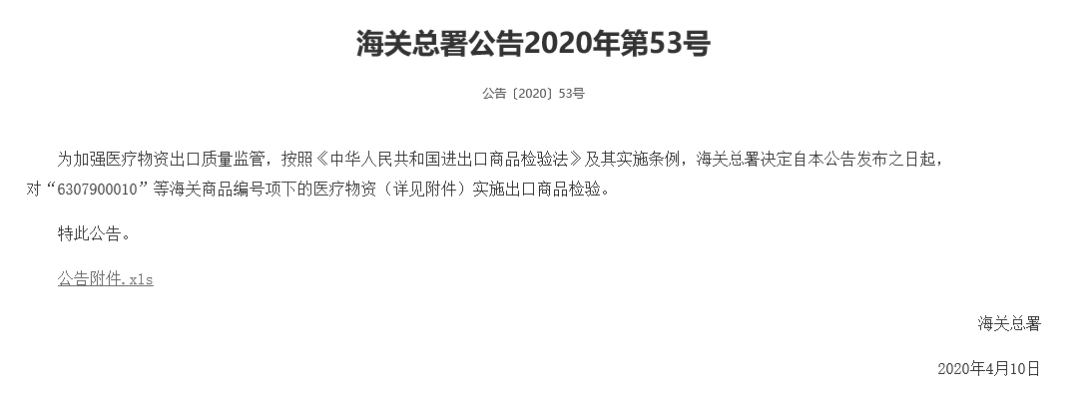 根据公告内容,我们可以看到,确实有一些医疗物资产品从4月10日起需要实施出口商品检验,但没有昨晚网传的打击面那么广。