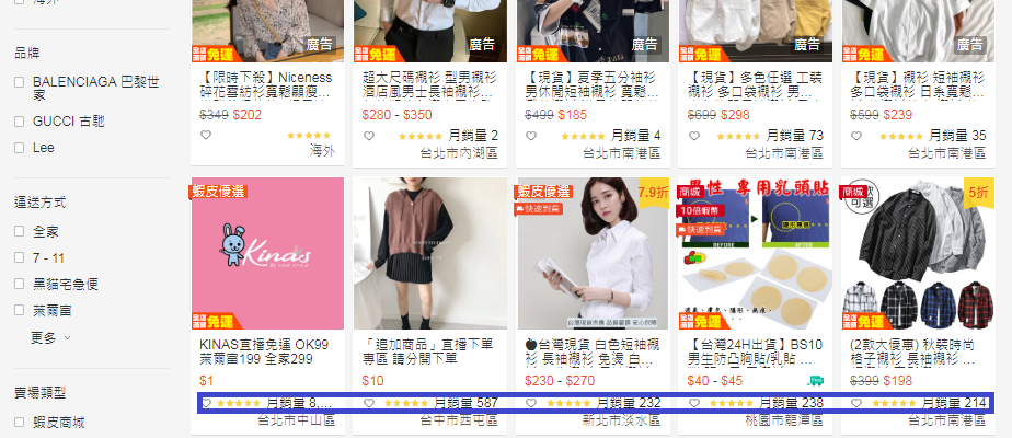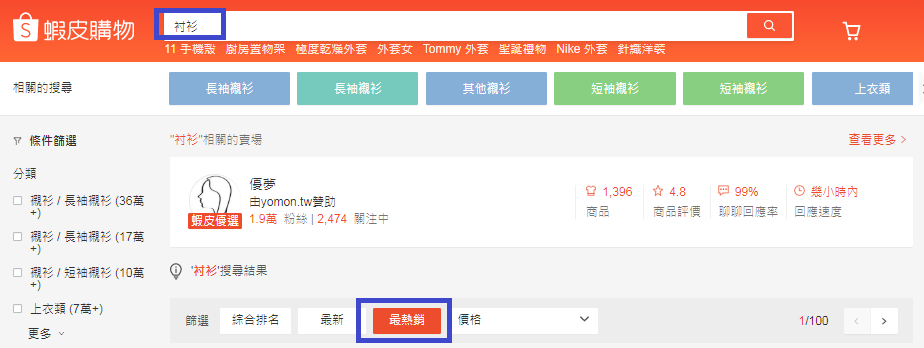 电商圈有句话叫:七分靠选品,三分靠运营,仔细想想,这句话确实挺有道理,因为选品对店铺的运营至关重要。如果商品选对了,运营店铺的时候肯定会轻松不少。 但是,一些新手卖家或者店铺运营状况很差的卖家,因为对选品没有任何经验,或者对选品认知不全面而跌进选品的坑里,这样的店铺不仅每天订单少,甚至有的店铺流量都没有。 这些人要么没有选品思路,不知道选择什么商品,要么片面或者极端,选不出可以得到市场认可的商品。往下,为了解决大家的选品问题,这里将从几个点为大家详细讲解。 搜索栏去搜索 拿台湾站来说,在shopee后台,我们搜索商品衬衫,在商品展示页面点击热销,除去第一排的广告商品,往下展示的就是当下卖的最火热的商品。 然后,你可以了解一下这个商品相关的拿货渠道和相关价格后,再决定要不要上新。 市场周报查询
