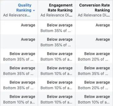 参与度排名:广告预期参与度的排名。参与度通过所有点击、点赞、评论和分享等来衡量。