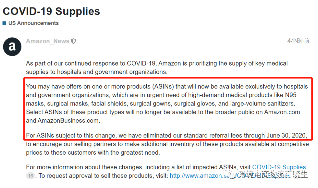 为了鼓励销售者以更具竞争力的价格提供更多库存,亚马逊还免除了3个月的标准平台费。在亚马逊的公告上我们可以看到姐夫的救急计划,公告原文如下: