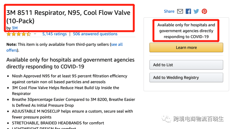 在种种原因下,亚马逊宣布停止向公众提供N95口罩,是因为它将在新冠病毒爆发期间优先向医院、政府机构和其他团体输送必需物资。