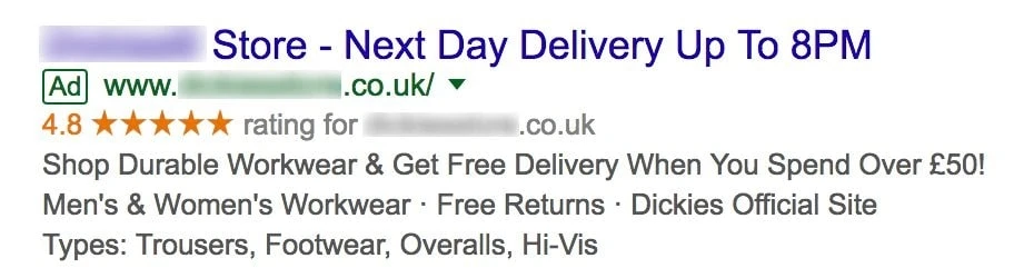 产品评分主要显示在谷歌购物广告中,偶尔会显示在谷歌的产品列表中。商家评分会显示在谷歌购物和搜索广告中。