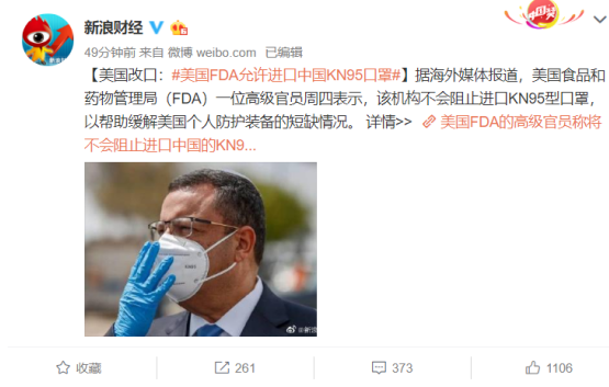 美国打脸,FDA允许进口中国KN95口罩