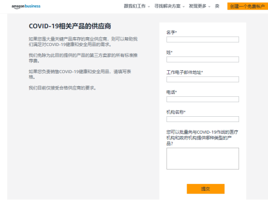 如果想申请向亚马逊供应防疫产品,卖家们需要通过https://www.amazon.com/b?node=21152222011&lo=grid&ref_=b2b_sow_dir_cv19_v1链接提交资料!