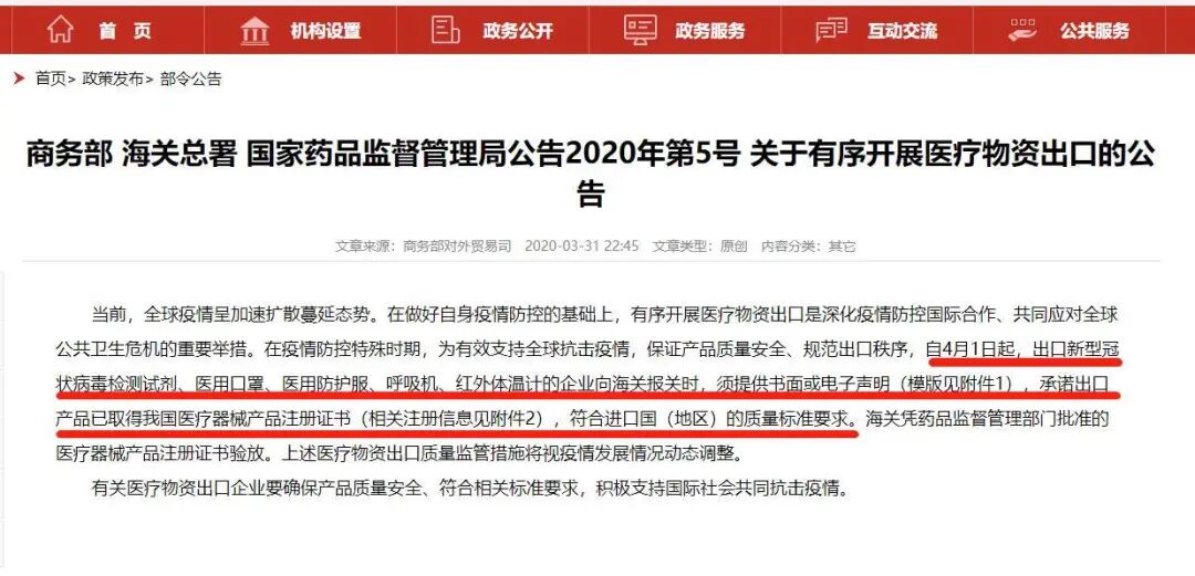 4月起医疗物资出口需声明 Source: http://www.mofcom.gov.cn 在疫情防控特殊时期,为有效支持全球抗击疫情,保证产品质量安全、规范出口秩序,自4月1日起,出口新型冠状病毒检测试剂、医用口罩、医用防护服、呼吸机、红外体温计的企业向海关报关时,须提供书面或电子声明(模版见附件1),承诺出口产品已取得我国医疗器械产品注册证书(相关注册信息见附件2),符合进口国(地区)的质量标准要求。海关凭药品监督管理部门批准的医疗器械产品注册证书验放。上述医疗物资出口质量监管措施将视疫情发展情况动态调整。 拥有一款专业实用的工具是高效运营的保障,一直观望或者挑花眼的卖家们有福啦!JS网页版+专业版插件免费试用! 扫码添加卖方通客服并回复【JS】进群获取JS全线产品8天免费试用!机会难得,小伙伴们冲呀!