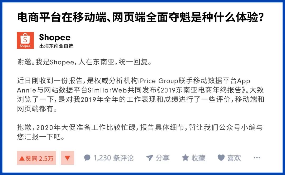 近日,权威分析机构iPrice Group联手移动数据平台App Annie与网站数据平台SimilarWeb共同发布《2019东南亚电商年终报告》。报告显示,Shopee移动端斩获2019年度下载量、月活数、用户留存率三大冠军,网页端也以超过20亿次访问拔得头魁,全面稳固区域内领航地位。
