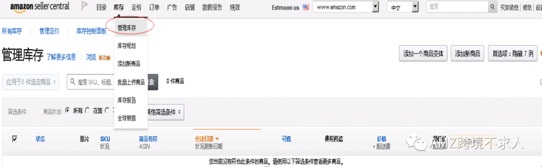 添加商品。点击添加商品,可以手动创建自己的新Listing或者跟卖其他已经存在的Listing。