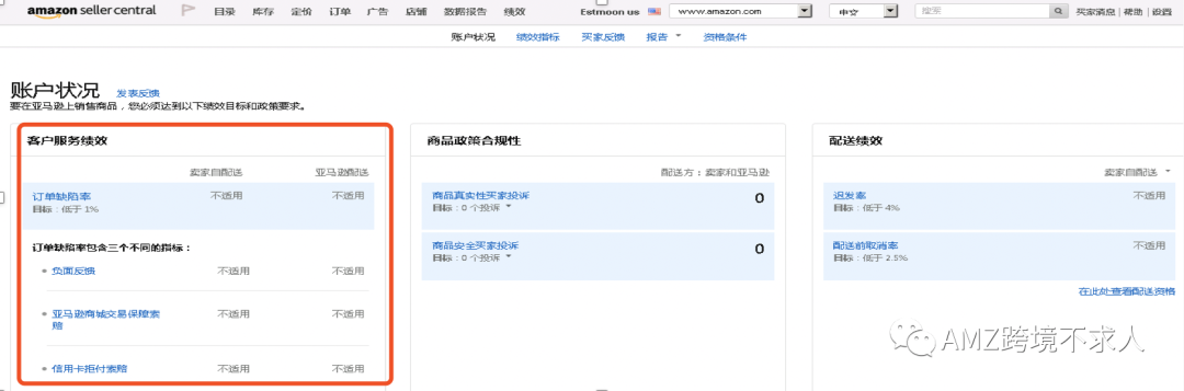账户状态 账户状态指标显示你的卖家账户是否因未满足绩效目标或不符合亚马逊政策而存在风险或被暂停。