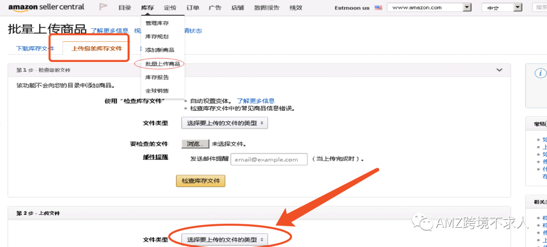 管理FBA库存:卖家可以看到转化到亚马逊的产品的库存;如果是你从国内发货的产品,自发货的这里就不会显示。 库存规划:主要用于管理和使用亚马逊的现有库存;当你需要补货,会提醒你补货功;也会给你一些销售意见。 添加新商品。与目录中的“添加新商品”功能一致。 批量上传商品:当你有几十种产品时,可以在这里下载表格,表格的形式可以快速上传大量的产品。
