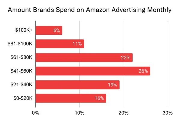 在亚马逊上销售的品牌中,有超过五分之三的品牌每月在亚马逊上的广告支出超过4万美元,较去年增长33%。