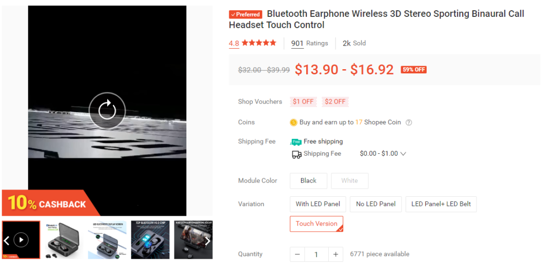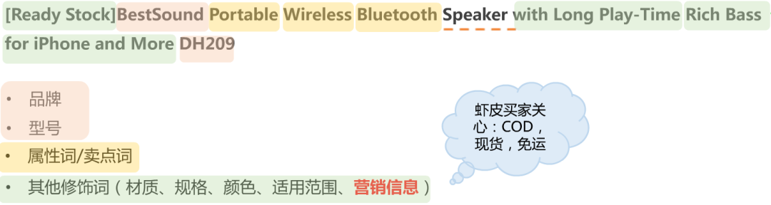 产品listing是店铺运营的基础与核心。产品的转化率、产品在平台的搜索排名及产品的销量都受其直接影响。 如果你不对店铺的产品进行listing优化,你的产品排名低,买家看不到你的listing,你的订单量便很难会有起色。 为获得更多的买家流量,确保产品订单稳步上升,listing创建好后,需对其持续进行优化,以提高流量的转化率和店铺的销售额。一条优质的listing需要具备:精准的标题、吸晴的图片、价格折扣、短小而精悍的描述、高分的评价等等。 标题优化 说商品的标题,肯定又要说到关键词了。好的标题意味着搜索结果排名有优势,而排名靠前搜索浏览量高,这便会让商品得到更多的点击。那么,关于关键词的使用要做到三点。 用足 参考平台标题字数限制,尽量使用足量的关键词,增加搜索命中次数。 用准 关键词与产品紧密关联,消费者通过这些词来检索目标产品。 用好 关键词强化突出产品特性,有效概括产品卖点,传递有价值信息。 举个栗子:标题里面产品的名称就是产品词,比如t恤的产品词,英语可以是t-shirt或tee。那到底选哪个词会好一些呢? 这里推荐一款工具,谷歌趋势工具(https://trends.google.com/),助你把握当地热搜趋势,可查询某个地区关键词的搜索热度。在工具里,选择地区(你的目标市场),加入你要比较的两个关键词,查询数据即可。 接着来说说标题里面的修饰词,修饰词包括品牌、型号、属性词、卖点词、其他修饰词(材质、规格、颜色、适用范围、营销信息)。为了更详细说明,我们把无线扬声器的标题2细分下给大家看一下。 关于营销信息,东南亚买家比较关心是否现货、货到付款,免运。标题可以点名相关信息。这个标题就是典型的用足、用准、用好关键词的体现。 这里给大家一个公式,标题万能公式:品牌名+产品词+属性词or卖点词+其他修饰词+型号。要注意的是:卖点词和产品词顺序可以互换;标题的前五个单词必须点名产品重要信息,这些很重要。另外关于热搜词: • 谷歌趋势还能查询你搜索的关键词近期有哪些热搜的关联检索。 • 虾皮市场周报也能查到市场近期热搜关键词(每周shopee会发到卖家注册邮箱,没有周报可以找市场经理要)。 • 在shopee搜索框,搜索产品词,会出现系统推荐的词组 ,这些词不仅和你的产品相关,也是系统热搜的词。 注意事项:小语种站点上传英文标题,虾皮系统自动翻译,如果你想自己翻译也行,但越南站不行。像抄袭标题,标题内重复同一关键词,都会导致listing违规。修改关键词最好在流量小的时候修改,比如清晨或半夜,因为搜索量小,对产品的排名影响不大。 图片优化 • 主图可以采用场景图,有些产品可以在图片中加入小图标及描述文字。描述文字要高度概括,突出卖点,唤醒买家的购买欲望。如果产品有多个款式或颜色,主图可以采用拼图方式。主图还可以加边框,增加促销信息的内容。 • 附图提供补充信息,顺序可以从整体到局部到细节的顺序展示。还有如特价信息、赠品信息、尺码表,对产品补充其他使用场景展示图都可作附图补充。 • 图片先调色调整,再进行高清上传。具体细节:最多上传9张照片,每张尺寸不得超过2.0mb,商品文件格式:jpg/jpeg/png,照片建议尺寸:800x800。如上传小视频更佳,仅手机端可操作。 这里需要注意的是:要根据目标市场做本地化,做高转化。如果条件允许,服饰类产品模特用亚洲的,服饰类产品图片风格要迎合东南亚市场保守、斯文的特点。要尊重宗教文化习惯,如印尼和马来站,内衣不要用真人模特做展示,记得要因地制宜。 注意:优选卖家和商品折扣,系统会自动为主图加上角标,注意关键信息的放置或留白,避免关键信息被遮挡。 价格优化 产品的定价逻辑可以参考上表进行。往下说说关于产品定价的一些细节: • 店铺里面建议至少20%的listing采取爆款定价,台湾站爆款价格建议小于99新台币,一定要选便宜的产品作为引入款。 • 爆款产品建议拆成单件销售,比如说卖袜子,如果单件标20件一买顾客可能不喜欢,如果拆分成20个sku,买家想买2件就买2件,想买4件买4件,自主权大一点。 • 为全店商品设置的折扣尽量都大于50%,东南亚人民习惯购买有折扣的产品。折扣标签,醒目又吸晴。如果同类产品都有折扣,你得尽量做到,人无我有,人有我优。 • 注意避免“夸大不实折扣”,产品上架前合理设置原价,留出打折空间。产品上架后,避免先提价再立刻打折。卖家在活动促销前十个日提高原价,属于夸大不实折扣,只要有该动作,都会触发违规。可能导致商品被删,产生罚分。 关于区间价格,同一规格的产品可以以某个款式或颜色为此listing的引流价格,即比其他款式或颜色低5%-10%的价格,但区间价格不能隔太远,隔太远放不到一个listing里面。 描述模板
