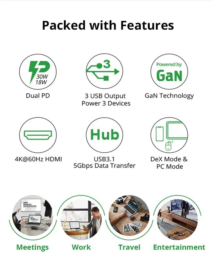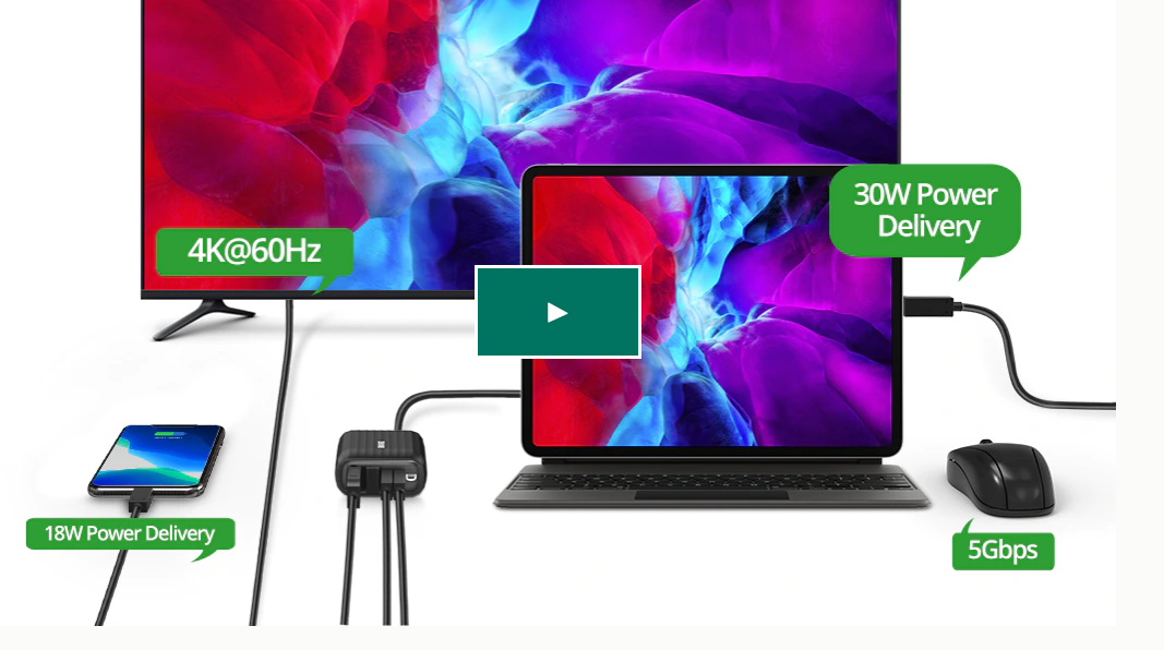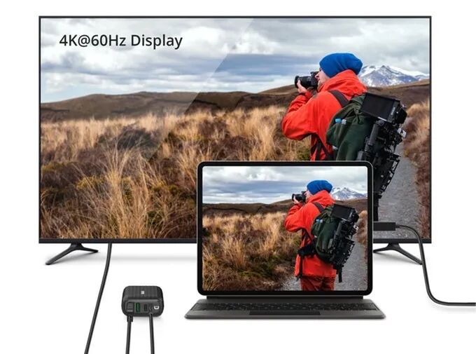 SuperHub的4K @ 60Hz HDMI端口可让兼容USB-C的设备连接到电视或显示器,通过电视模式享受4K分辨率。