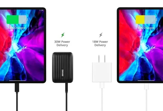 与随附的18W电源适配器相比,它可以将苹果新款iPad Pro的充电时间缩短一半。