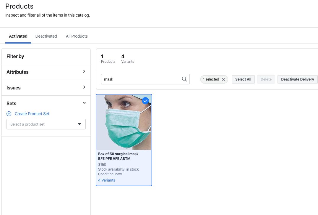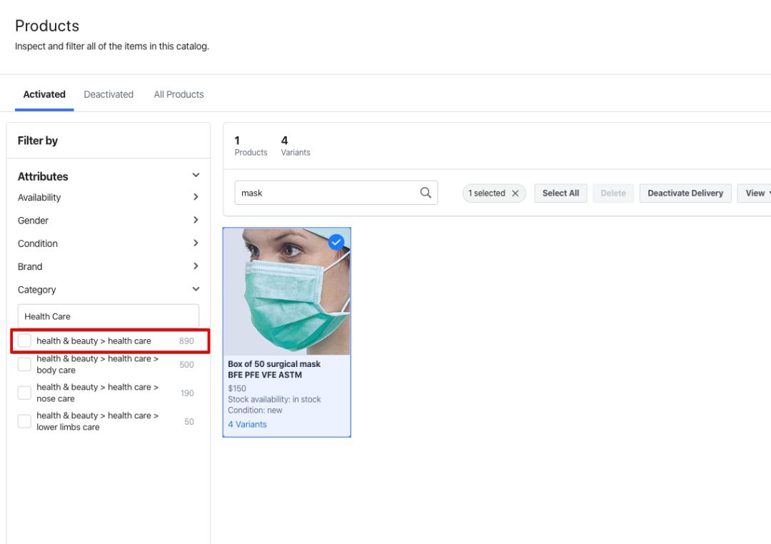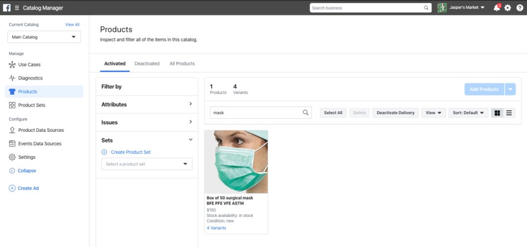 这就要求广告主立即停止投放所有的口罩销售广告,同时停止在动态广告中销售口罩。但对于拥有中型或大型目录的广告主而言,从成百上千种商品中找出口罩条目可能颇具挑战。所以我们特此介绍一些简便步骤。