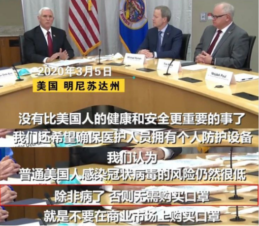 回顾早前美国副总统彭斯在3月5日新闻发布会上告诉大家,“除非病了,否则无需购买口罩”的场面,现在想想真是打脸啊。