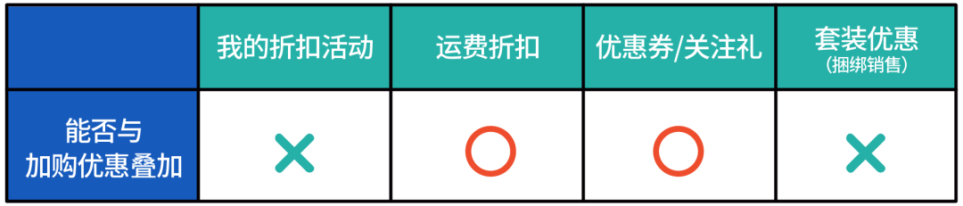 您可以根据下表分析不同的营销活动叠加情况,依据自身店铺和商品情况进行调整: