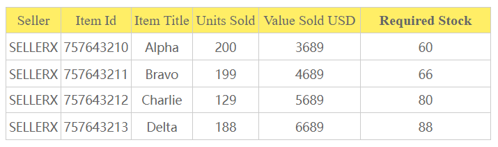此项服务的运行机制简洁而不失其科学性,每一位海外仓卖家都在此项服务的涵盖范围内。基于您过去八周的销售数据以及现有库存,为您制定足以应对未来六周销售的入库数量建议,并且是细分到每个需要补仓的产品的数量。请看如下示例: