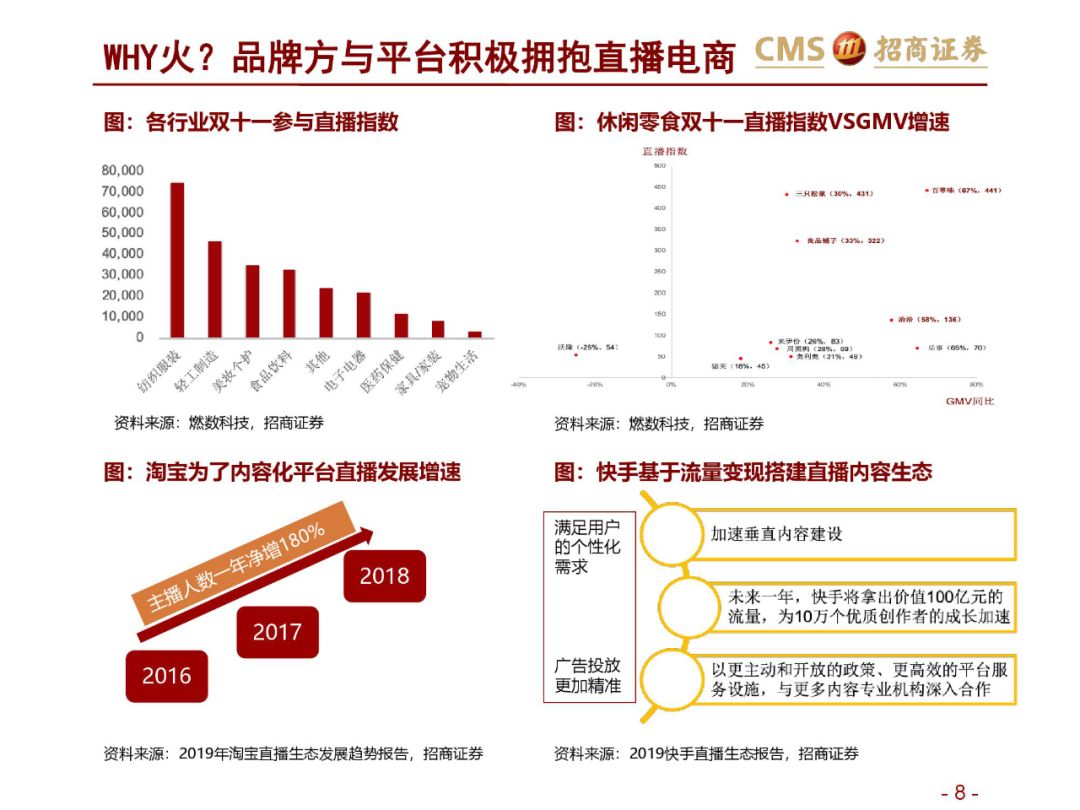 这条微博包含了两个重要信息,一是直播电商在2019年获得了爆发式增长,根据该报告提供的数据显示,2019年直播电商GMV达到了3000亿规模,淘宝平台直播人数一年也增长了180%,2020年的潜力空间很大。加之,包括淘宝直播、京东直播为代表的电商平台,与抖音、快手为代表的视频平台,纷纷进入了战场,在流量红利结束的当下,电商直播具备了新风口的很多元素。