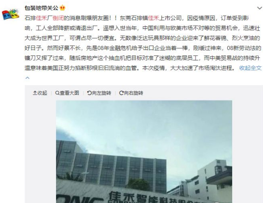 3月21日,拥有4000名员工的知名品牌Cosonic耳机制造商佳禾电子因疫情宣告工人全部降薪或清退出厂。