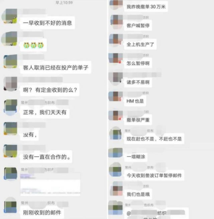 首当其冲的,就是是国内的纺织行业。那些专门做出口的纺织工厂,每天都接收到大量海外取消订单的消息。