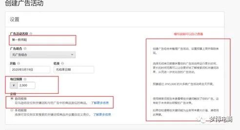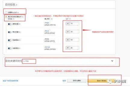 Feedvisor①最近发布的一份报告《Brands and Amazon in the Age of E‑Commerce》数据显示,有83%的品牌表示:他们在亚马逊的广告投放至少获得了四倍的回报!因此,对于不管是想要推广新品的卖家还是想要提高销量的卖家来说,进行亚马逊广告投放是打开流量的重要入口。对于新手卖家而言,一切投入的前提,当然是要了解亚马逊广告的主要类型、创建方式,以及广告的匹配方式,只有在充分了解了亚马逊广告基础知识和功能之后,我们才能更好的去优化利用它,所以现在就先从广告的基本知识谈起吧。用于推广在亚马逊上销售的单个商品。比较常见,根据实际点击次数收费(CPC计费方式),可以增加产品的曝光,常见的位置有搜索结果顶部、搜索结果底部等。商品推广中可以自主选择关键词的匹配方式,主要有以下几种:广泛、词组、自动以及精准等,后文将会对这几种匹配方式做细致阐述。以广告素材包括头条词、品牌logo徽标和商品3款为主要形式,将广告内容在网页上置顶,当买家点击品牌推广广告时,可以指定将他们转到亚马逊品牌旗舰店或者商品的任何页面,品牌推广可以提高品牌的知名度。以上表格是一个简单的对比图,对于商品推广广告虽然没有审核,但是也需要等待1-2个小时才能上线。亚马逊广告的匹配方式主要有以下几种:自动匹配、手动匹配(包含广泛匹配、短语匹配、精准匹配)。自动匹配广告并不需要我们输入关键词,只需要我们对以下四种匹配设置竞价即可:紧密匹配:买家使用与商品紧密相关的搜索词进行搜索时,亚马逊自动会向其显示广告。例如,商品是“Doppler 400-count Cotton Sheets”,将在买家使用“cotton sheets”和“400-count sheets”等搜索词时展示广告。宽泛匹配: 买家使用与商品并不密切相关的搜索词进行搜索时,会向其显示广告。如果商品是“Doppler 400-count Cotton Sheets”,将在买家使用“bed sheets”、“bath sheets”和“bath towels”等搜索词时展示广告。同类商品(也称替代商品): 买家查看与商品类似的商品详情页时,会向其显示广告。如果商品是“Doppler 400-count Cotton Sheets”,将在包含“300-count Cotton sheets”和“queen 400-count Sheets”的商品详情页上展示广告。关联商品(也称补充商品): 买家查看与商品互补的商品详情页时,会向其显示广告。如果商品是“Doppler 400-count Cotton sheets”,将在包含“queen quilt”和“feather pillows”的商品详情页上展示广告。广泛匹配的模式是:客户搜索词中包含任意顺序的亚马逊广告关键词,就会被匹配从而激活广告,这种匹配类型可以让广告获得大量曝光机会。优势:①这种亚马逊广告关键词的匹配类型可以获得最大流量,能接触到更广泛的受众群体,能够带来更多的潜在用户访问,榨取大量的优质关键词可以放在精准和词组广告的关键词里。劣势:精准度不够,可能会带来大量无效点击而浪费广告预算。在设置的关键词的前后可添加一些词,但搜索词必须包含确切的短语或词序。搜索词条的关键字必须与输入广告组的关键字保持顺序一致。优势:相比亚马逊广告关键词的广泛匹配,它比广泛匹配的限制性更高,会使广告展示在更相关的广告位,能够更加精确定位潜在客户。劣势:获得的展示机会会大大减少,会丧失一些曝光和点击,且定位潜在顾客的准确率不如精准匹配高。用户搜索词必须与投放关键词一致才会显示广告,精准匹配是限制性最高的匹配类型,但与搜索的相关性更高。劣势:亚马逊广告关键词的精准匹配是限制性最大的类型,会降低展示次数,获得潜在客户的范围较窄,且点击花费最高。综上所述,每种关键词匹配类型都有各自的优劣势,在广告投放选择匹配类型时,建议先从自动和广泛匹配开始,以便充分了解产品的潜在客户与关键词效果。我们等自动和广泛广告运行一段时间之后就可以查看广告活动管理中的【关键词】选项卡中的关键词指标,或者广告报告,以便评估自己投放的关键词和匹配类型的效果。确定哪些关键词和搜索词的效果最好之后,就可以更改竞价或创建一组更简洁的关键词,以便后续优化广告活动。了解了以上的基本知识之后,是不是也知道你自己到底需要哪种类型的广告了,接下来是广告活动的创建流程:亚马逊卖家后台——广告——广告活动——创建广告活动。如何创建自动投放广告?这个非常容易创建,只需选择商品推广并输入广告活动的名称、预算和开始日期(下图框所指的位置)即可。它的工作原理是,亚马逊将从产品列表中抓取产品的信息并在预算范围内帮卖家投放广告。注意:如果不想参加活动的子变体可手动删除那个变体。手动投放广告允许卖家上传自己收集的关键词列表或者通过自动投放广告的搜索词报告所找到的关键词。这类广告的另一个关键是,大家可以使用不同的关键词匹配类型,这样可以控制关键词和实际搜索词的匹配程度(广泛匹配或精准匹配)。①广告活动名称:填写的广告活动名称只有自己可以在广告活动管理中查看,它不会出现在广告中,也不会对买家可见,可以根据要推广的商品类型或季节性商品来为广告活动命名。②每日预算:每日预算是你愿意在一天内为广告活动支出的平均金额。③开始/结束日期:选择适合的开始日期和结束日期,可以立即开始广告活动,也可以不设置,持续投放广告活动(无结束日期),这种类型我们可以随时暂停广告活动,随时重新启动。如果设