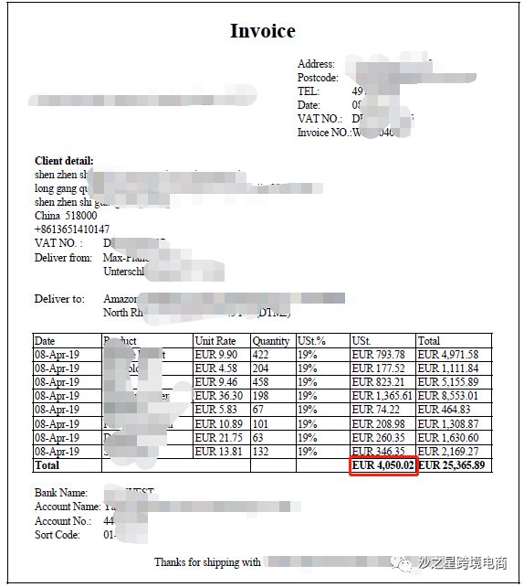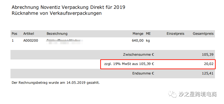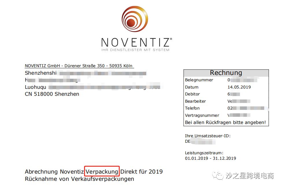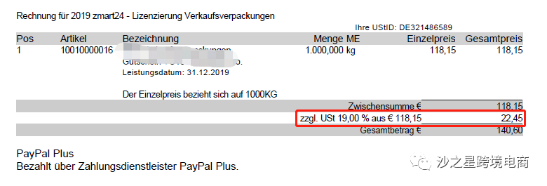 如何确定该发票是否是包装发票?可以查看发票中是否有Verpackung这一句,若有,则该发票属于包装发票,正常情况下,包装发票均有此一词。