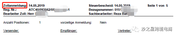 如何确定是否是海关发票呢?要确定是否是海关发票,只需要注意一下文件顶部,若出现Zollanmeldung,则是海关发票,海关的发票类型不全一致。