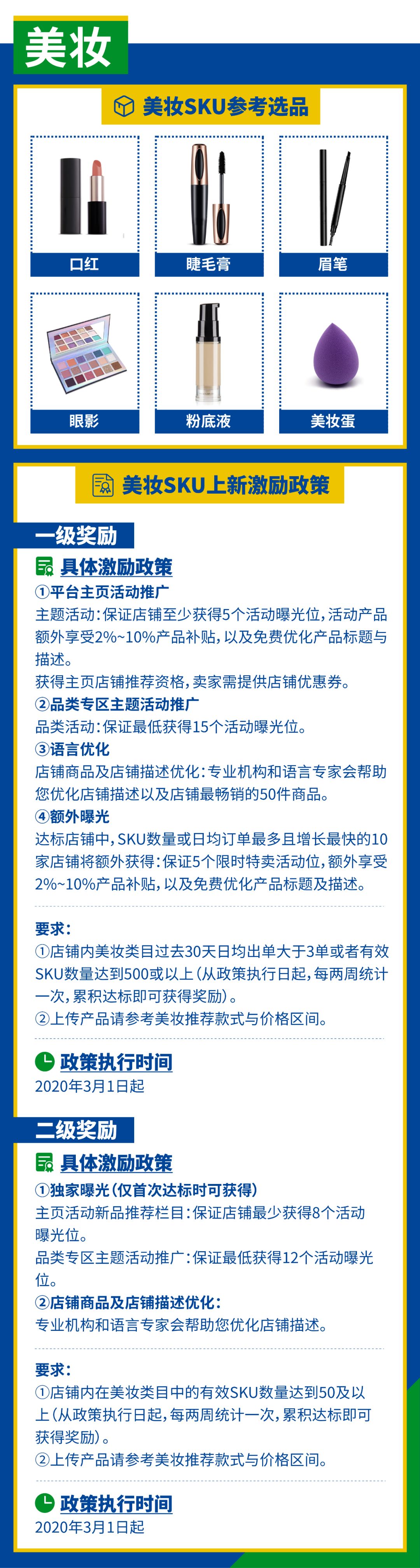上新巴西站点五大重点激励类目(男装、女装、箱包、鞋子、美妆)可享Shopee平台特别资源:平台主页活动推广、品类专区主题活动推广、额外曝光,还有机会获得独家曝光机会,专业机构及语言专家优化商品、店铺描述。赶快入驻上新,激励强度超出你想象!