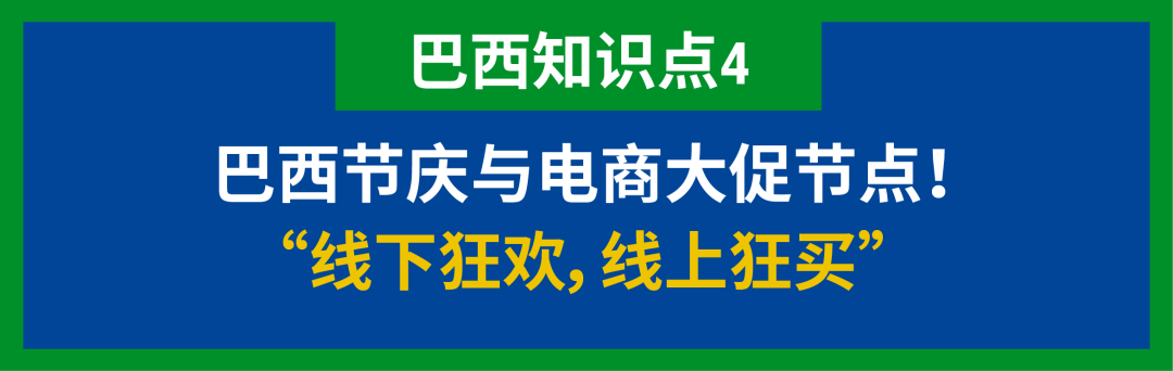 线下嗨嗨嗨,线上买买买,巴西人民还将节日的狂欢带到了网购中。据Webshoppers数据,巴西当地六个重大节日:母亲节、情人节、父亲节、儿童节、黑色星期五及圣诞节的网购销售额高达全年电商销售总额的四分之一![9]