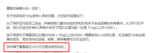 亚马逊欧洲站规定:超过15KG的箱子将无法入仓!
