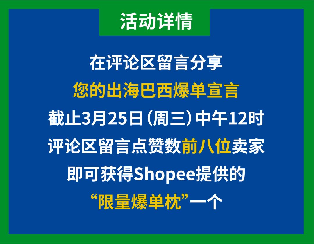 注:①仅限Shopee跨境卖家参与,兑奖需提供店铺ID;②活动截止时间:北京时间3月25日(周三)中午12点;③活动最终解释权归Shopee所有。