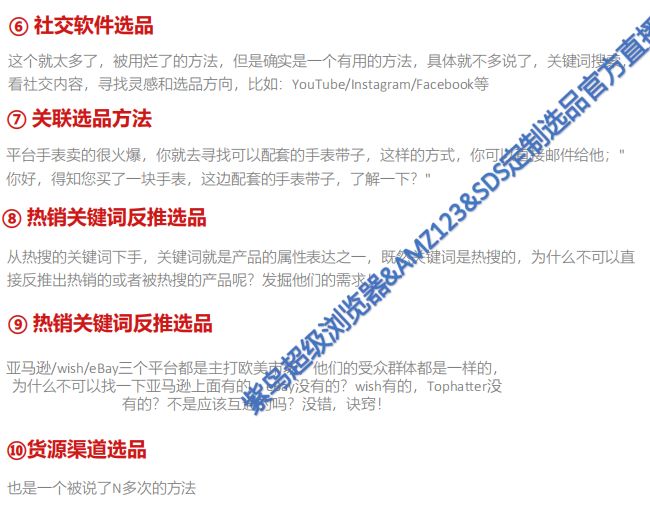A:俗话说的好,七分选品三分运营,针对这次交流,大致罗列了以下10种选品的方式,大家不妨可以先细细的品一下。