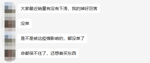 ·卖家A:店铺销量昨天对折,今天再对折。 ·卖家B:订单不是腰斩,而是没了,没了,没了..... ·卖家C:昨天一觉醒来,订单少了一半。今天一觉醒来,小狗多了二十多条! ·卖家D:今早起床打开窗,心情美美哒!吃完早餐去上班,心情美美哒!打开电脑看订单,猝......