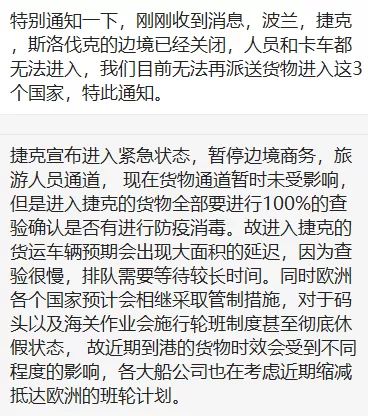单量下跌只是危险冰山一角,更为可怕的是,海外很多国家都开始封城了。目前已知意大利封城,美国禁止欧洲航班,还有消息称:波兰、捷克、斯洛伐克边境关闭。