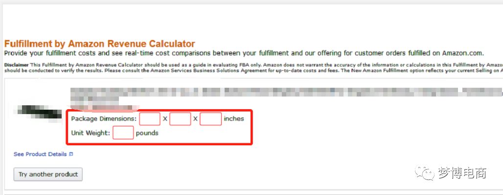 (4)输入参数后下面会出来计算的版面,直接点击“calculate”,将鼠标悬浮在亚马逊配送小箭头上就可以看见了