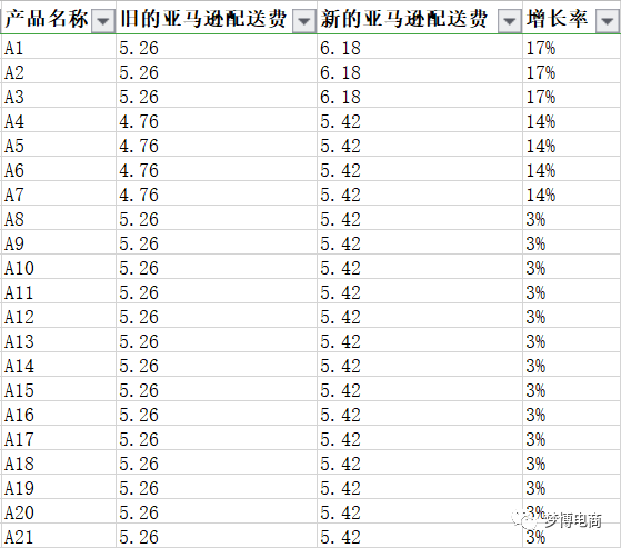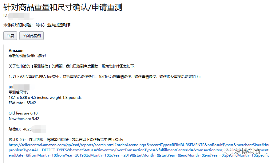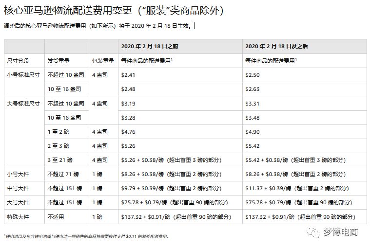 (我们的鞋子一般是超过1磅的标准尺寸,发货重量就得比较商品重量和体积重量的较大值再加上0.25包装重量,体积重量>商品重量的就是“抛货”) 黄色橙色都是一些备注,表中前面四档的发货重量小于等于1磅,也就是说商品重量小于0.85磅(减去0.25亚马逊包装重量) 不需要计算体积重;后面三档的发货重量大于1磅,需要和体积重比较出哪个数值大,大的一方再加上0.25包装重量。以下是超哥设置的新品配送费的估算表格,以某款鞋子为例:(1)包装尺寸和商品重是仓库包装后人工测量的,然后换算成美国单位(2)该商品重量大于0.85磅所以要计算体积重量,由上面的公式可得 6码的 体积重=9.8x7.1x3.1/139=1.55 ==> 体积重>商品重 亚马逊包装后重量=1.55+0.25=1.8 ==> 发货重量1~2磅 配送费=4.76 (亚马逊配送费档位表格“大号标准尺寸(1磅~2磅)”) 将上面大篇幅梳理一下:确定包装后商品尺寸和重量转换成英寸和磅,重量大于0.75磅的需要计算体积重量,与商品重量相比哪个大就采用哪个,小于等于0.75磅的直接采用商品重量,然后加上亚马逊包装重量就得出了发货重量,最后根据商品尺寸和发货重量找到对应的配送费档位找出配送费。以上只是针对我们某款鞋子(非服装类大号标准件)做了分析,适用于大多数产品和卖家,小号标准件以及大号的计算流程也是一样的,可能还有额外的收费,具体的参照表格大家在后台搜索框搜索“2020 年美国亚马逊物流配送费用”详细了解。前面配送费的截图是适用于2019年2月18日~2020年2月17日,18日之后的费用较去年上涨,后台非服装类的变更的表格截图如下:以下是本人对几款产品年前年后的亚马逊配送费进行了统计对比部分示例:我是按照更新后比更新前的增长率来降序排列的,大多都是增长了3%配送费,针对增长率较多的,可能是之前亚马逊测量测少了,也可能是新的一批包装没注意所以测大了,这是偶然现象,如果觉得大的离谱的可以开case申请重测。以下是我申请通过的某款产品重测并且索赔后的case回复的截图:万一申请重测之后和自己的结果还是相差很多,可能是亚马逊仓库偷懒并没有测量,将现在是所有库存移除到海外仓,给现在的子变体改头换面 新创建绑一个子变体,sku和变体主题涉及的参数不一样 其他参数都和之前的一样,重新贴标和新外箱单入仓,新品第一次入仓亚马逊都会测量的,不过这个方法过程繁琐代价挺大的。(我没有尝试过,只是想想,尝试前记得算算费用值不值得) 如果配送费高的而且销量并没有很好的产品,一天就出个几单,建议可以再绑定一个它的自发货然后价格比fba的低,发货时间需要两周,出单后可以创建移除订单给买家,因为移除订单的价格才零点几美金,并且有些消费者会选择自发货的。 觉得这样手动计算很麻烦的卖家,有一种很简单的工具--亚马逊物流收入计算器:https://sellercentral.amazon.com/fba/revenuecalculator/index?lang=en_US& 重新创建一个空白不填写尺寸的亚马逊ASIN,在计算器输入这个ASIN的时候就会要求你输入这个产品的尺寸和重量,就可以得出它的配送费,可以快速准确估计商品的亚马逊物流配送费用。(1)创建空白listing(不填写尺寸和重量,自发货或者fba的都可以)