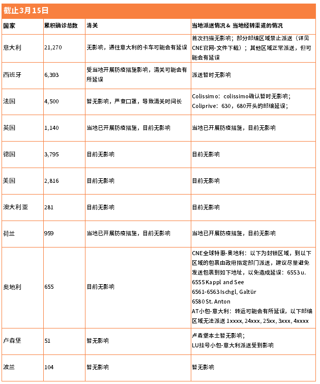 注:考虑到部分路向邮路情况拥堵,您可选择CNE自营渠道出运,如CNE全球优先、CNE全球特惠等渠道。
