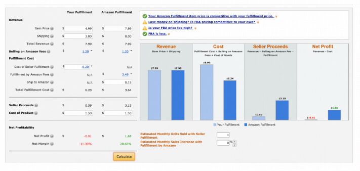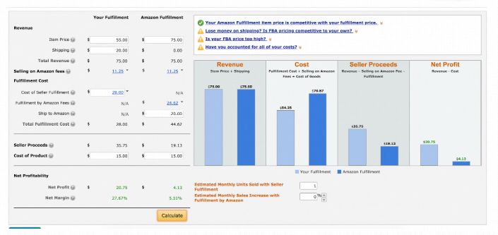 要决定哪种物流方式最适合你的产品,你可以使用亚马逊的FBA收入计算器来预测费用和支出;
