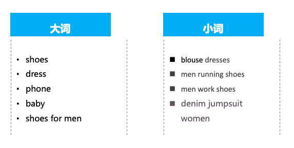 【小词】:PB小词通常是由2-3个词组成的长尾词,多是详细的属性词,词意精准;新品或出单不稳定的产品往往利用小词提高转化率。