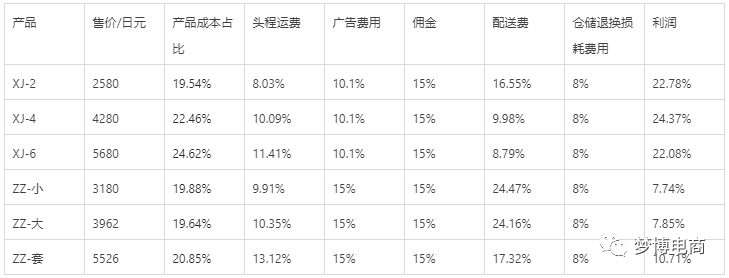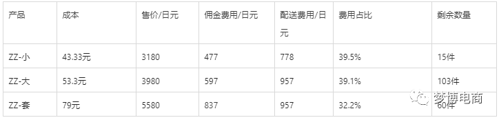 总回款日元1417821日元,回款率46.88%,折合人民币90031元132447-90031-5500=36916元;剩余36916元未收回(5500为退税利润)剩余库存完全销售可回款1017864日元, 折合人民币64634元紧接着我们再从产品成本售价等各方面来分析产品的利润空间:(汇率计算0.0635)以此我们再推算各项费用占比:(汇率计算0.0635)目前总的可变性不大的产品成本我们将之固化在20%,平台佣金固定为15%,现有产品配送费不可变,新产品开发可根据亚马逊日本站配送费规则设计使之配送费降至比较低。在售价不变的基础上可优化成本有头程运费,广告费用,仓储退换损耗费用,优化空间在5%~12%。另外从上述分析该类目为具备一定高门槛的类目,需海运来进行优化成本,运费成本费用是我们在产品设计选择上必须考量的因素。新开发产品上可在上述基础上优化亚马逊配送费,我们在标准件规则内做一定解读
