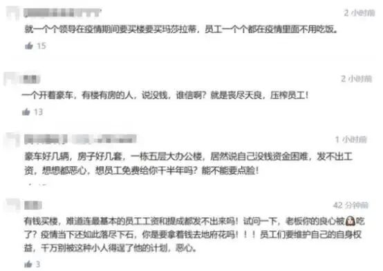 还有人爆料,该公司拖欠员工工资不发,公司领导却在疫情期间买楼、买车。