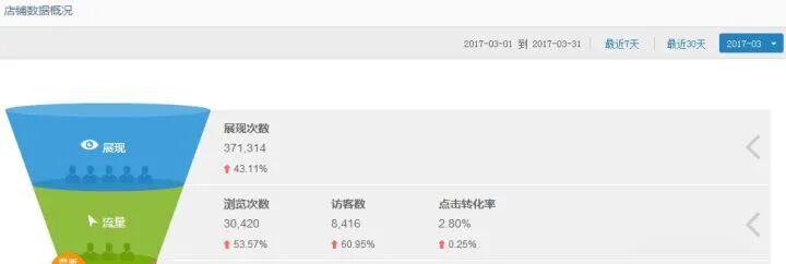 ②. 店铺PV,UV等持续上涨,数据为2017年3月份生意参谋截图